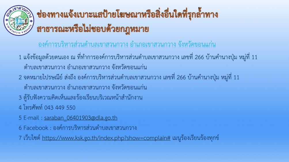 - ประชาสัมพันธ์ ศูนย์ประสานงานการเลือกตั้งประจำองค์การบริหารส่วนตำบลเขาสวนกวาง